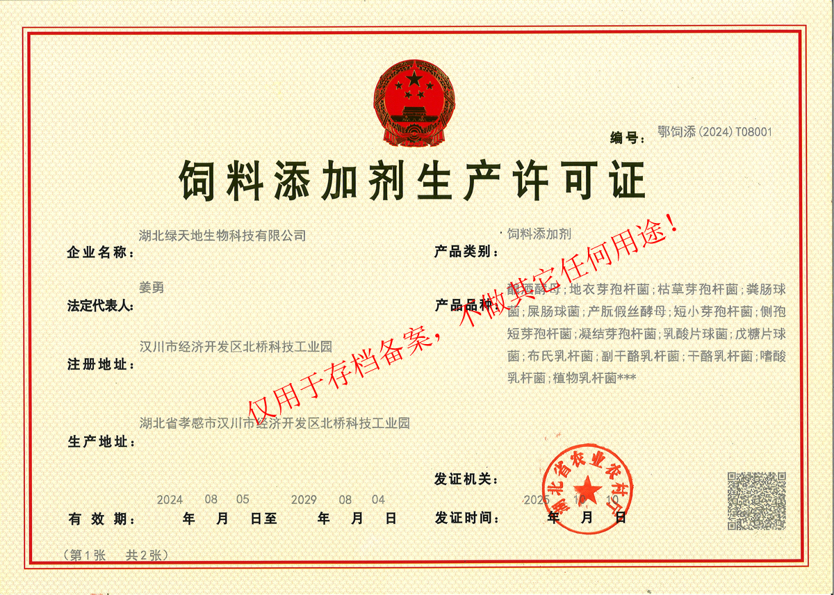 湖北綠天地生物科技有限公司 (簡(jiǎn)稱綠天地公司)投資7000萬元,擁有25000平方米的廠房和國(guó)內(nèi)先進(jìn)的設(shè)備360臺(tái)套,建有微生物發(fā)酵、發(fā)酵冷凍干燥、低溫造粒等8個(gè)車間,發(fā)酵罐總?cè)萘?50立方米,專業(yè)的飼用級(jí)益生菌發(fā)酵生產(chǎn)基地。 公司已通過IS09001:2015質(zhì)量管理體系認(rèn)證。 綠天地公司得到了華中農(nóng)業(yè)大學(xué)、中國(guó)農(nóng)...